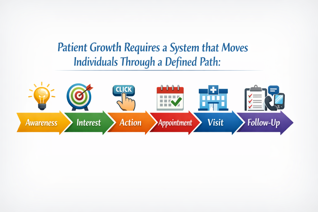 Marketing creates awareness, while patient growth is a structured system that moves patients from awareness to appointment, visit, and follow-up.