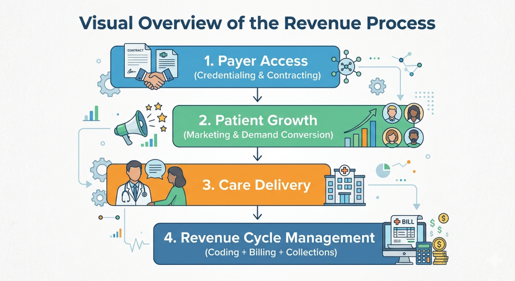When marketing, patient growth, and payer alignment are properly structured, Revenue Cycle Management can operate within a stable and predictable environment.