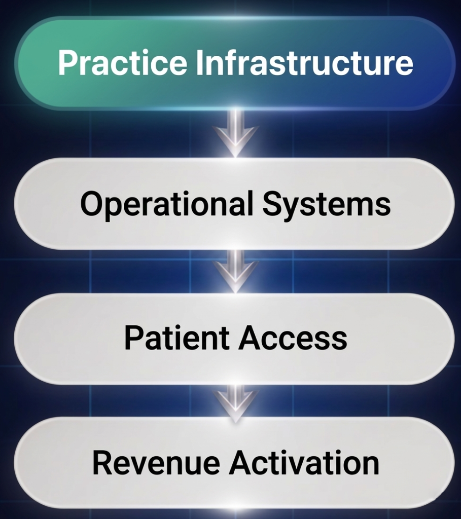 Infrastructure determines whether the practice operates efficiently and begins generating revenue successfully.