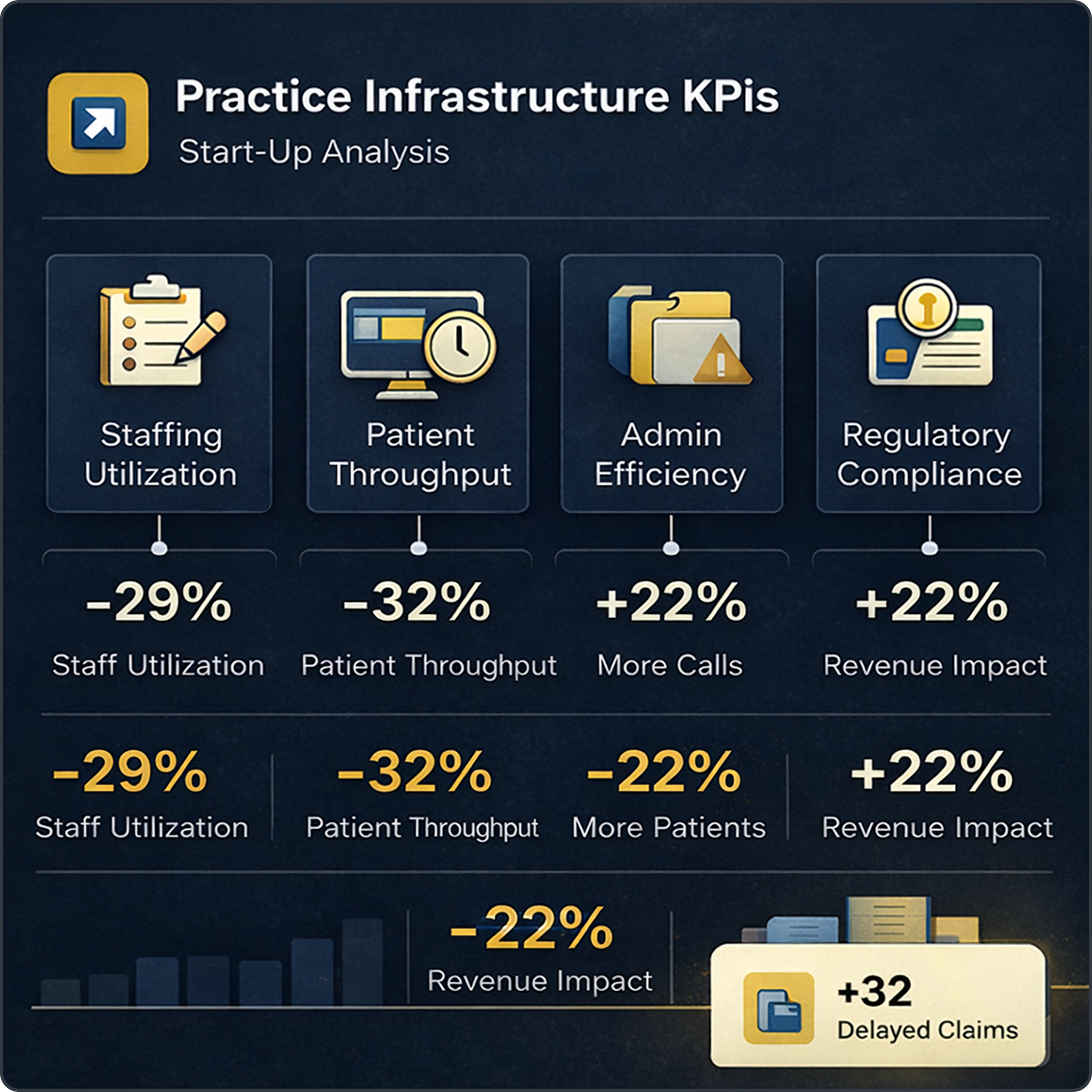 Many healthcare practices experience challenges during their startup phase due to incomplete or poorly designed infrastructure.